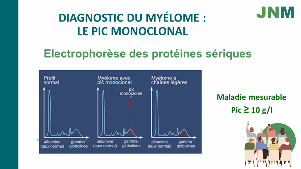 Dans cette seconde vidéo présentée en 2025 à l’occasion de la Journée Nationale du Myélome (JNM) Isabelle patiente et Benoît aidant, témoignent de leur expérience et vécu. Le Dr Lionel KARLIN présente ensuite les symptômes qui sont pris en compte, ainsi que les examens qui sont réalisés, pour diagnostiquer un myélome.